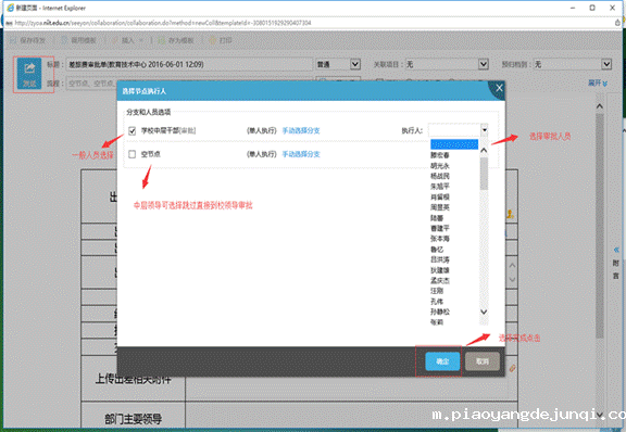 第四步:填写完成后点击发送,会弹出审批对话框,其操作如下图:
