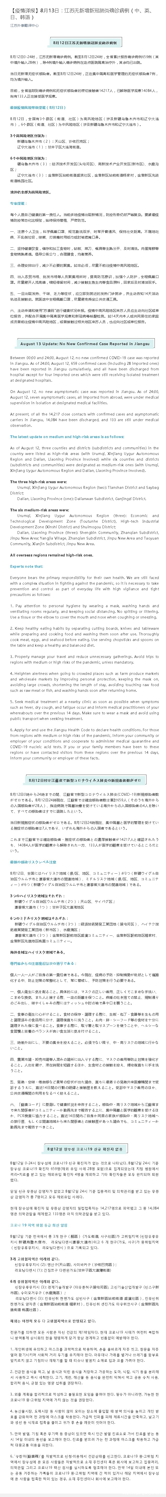 August 13 Update: No New Confirmed Case Reported in Jiangsu