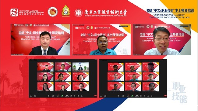 为推动国际中文教育与职业教育“走出去”融合发展,在海外实施“中文+职业技能”教育,推进具有中国特色、国际先进水平的“职业标准建设”,5月11日,教育部中外语言交流合作中心、中国东盟中心、老挝教育与体育部职业教育司、老挝驻华大使馆以及csgo直播比赛官方平台“中文+职业技能”国际推广基地共同举办的2022年老挝“中文+职业技能”本土师资线上培训项目正式开幕。老挝职业教育司副司长赛莎蒙·昂西在线出席开幕式并致辞,我校校长谢永华开启开班第一课,副校长孙雁飞致欢迎辞。来自老挝万象技术学院、万象河内友谊技术职业学院、老挝职业教育发展学院、老挝-印度创业发展中心、老挝理工学院、老挝-德国理工学院、帕克帕萨克技术学院、萨凡纳赫特技术职业学院、坎蒙省技术职业学院、琅勃拉邦职业技术学院等十余所职教院校的38名教师参加培训。