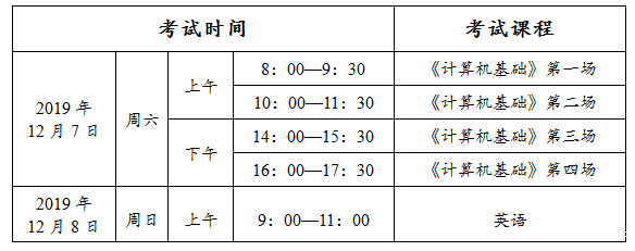 2019年下半年成人高等教育英语、计算机统考时间为2019年12月7日-12月8日,具体安排如下: