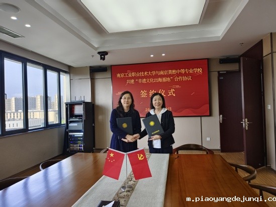 5月9日下午,我校与南京莫愁中等专业学校在莫愁中专高庙校区签署合作协议,正式启动“非遗文化出海基地”建设项目。学校党委常委、副校长魏萍,南京市莫愁中等专业学校校长朱国美作为双方代表出席签约仪式,两校相关负责人及骨干教师共同参与活动。