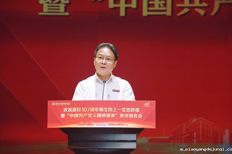 党委副书记、校长何学军主持大会。他表示,在建校107周年之际重申爱国的信仰,师生共同聆听中国共产党人精神谱系宣讲,能够更加深刻地认识中国共产党先进的政治属性、崇高的政治理想、高尚的政治追求、纯洁的政治品格,更深刻地体会革命道路的曲折和胜利的来之不易,感受革命先烈崇高的精神境界和信念追求。他强调,全校师生要切实发扬以“敢为人先、责先利后、敬业乐群、追求卓越”为内核的新时代南工精神,为办好人民满意的职业教育不懈奋斗。