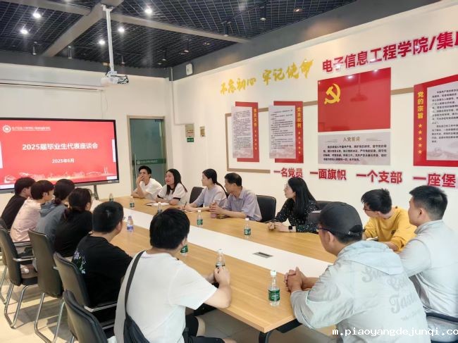 为深入了解毕业生的学习、生活及职业规划情况,加强学院与毕业生之间的沟通交流,助力毕业生顺利迈向人生新征程,6月4日,电子信息工程学院/集成电路学院在敬业楼113会议室举办2025届毕业生代表座谈会。关工委退休教师代表李金钟,学院党委书记、院长杨燕,党委副书记、副院长蒋丽洁,辅导员代表以及各专业毕业生代表齐聚一堂,共叙师生情谊,共谋未来发展。