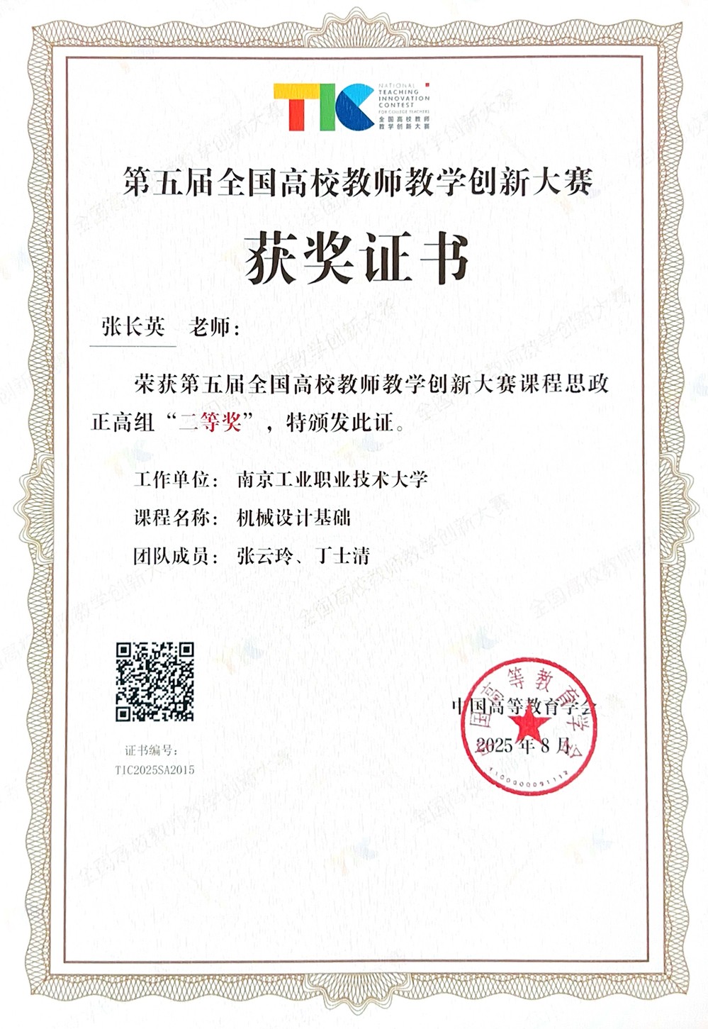8月16日至19日,由教育部高等教育司指导、中国高等教育学会主办的第五届全国高校教师教学创新大赛全国赛现场评审在北京理工大学成功举办。 我校机械工程学院教师张长英凭借在课程思政教学方面的系统创新与扎实成效,荣获课程思政正高组全国二等奖。
