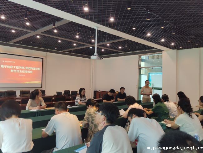 为明确新生班主任的工作职责,提高工作能力,确保2025年迎新工作的顺利开展,9月10日下午,电子信息工程学院/集成电路学院在敬业楼111会议室举行了2025级新生班主任培训会。学院党委副书记蒋丽洁、新生辅导员、新生班主任、班主任助理参加了会议。