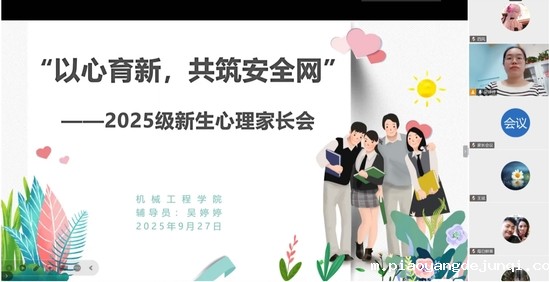 为促进家校联动,凝聚育人合力,共同助力新生成长成才,9月27日上午,机械工程学院通过线上方式成功举办了2025级新生家长会。本次会议以“以心育新,共筑安全网”为主题,学院辅导员围绕大学生心理健康、校规校纪与反诈意识培养等内容与家长们进行了深入细致的交流。