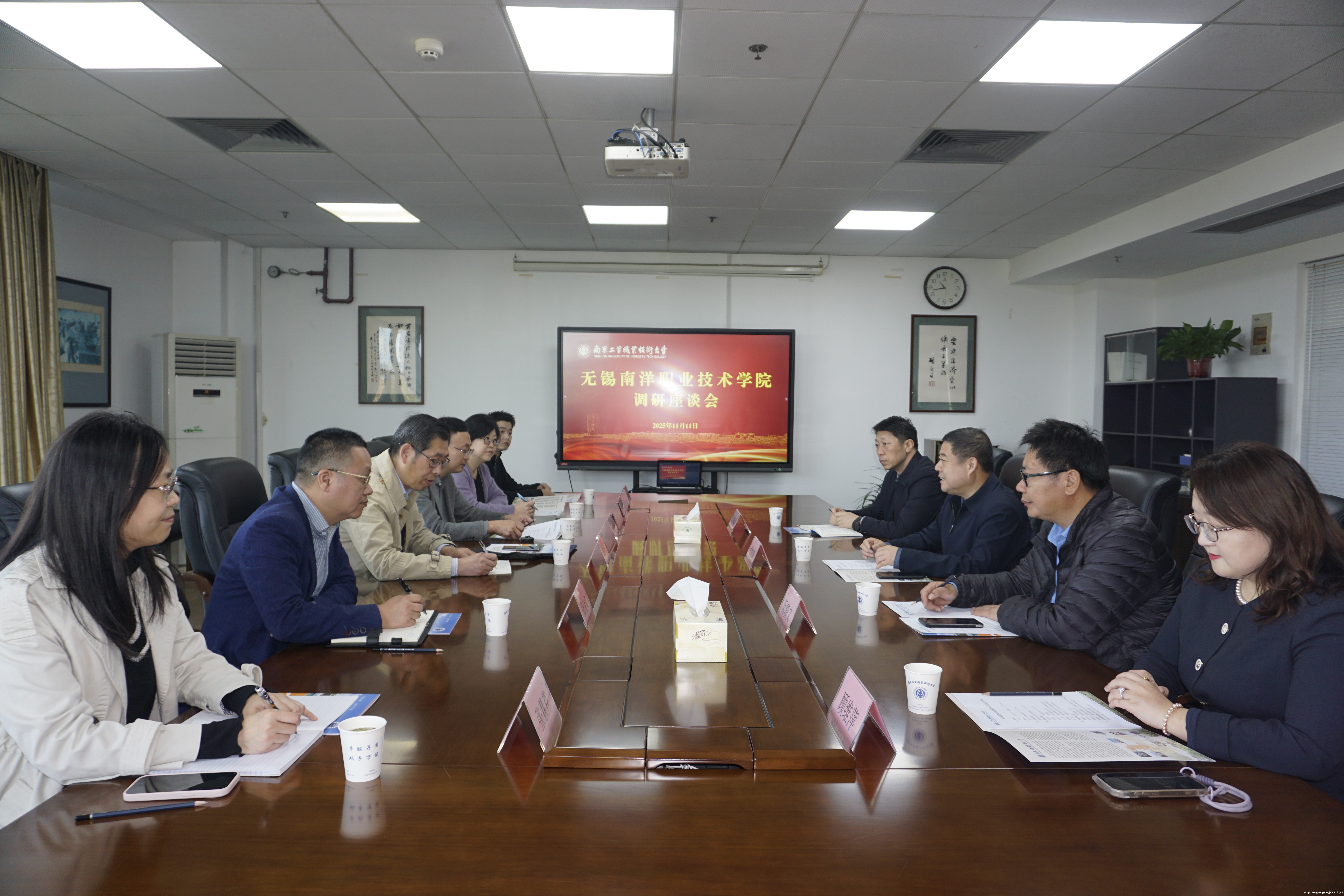 11月11日上午,无锡南洋职业技术学院发展战略委员会副主任吴雪纯一行来校调研交流。我校党委常委、副校长崔新明在行政楼401会议室接待了来宾,学校相关部门负责同志参加座谈。