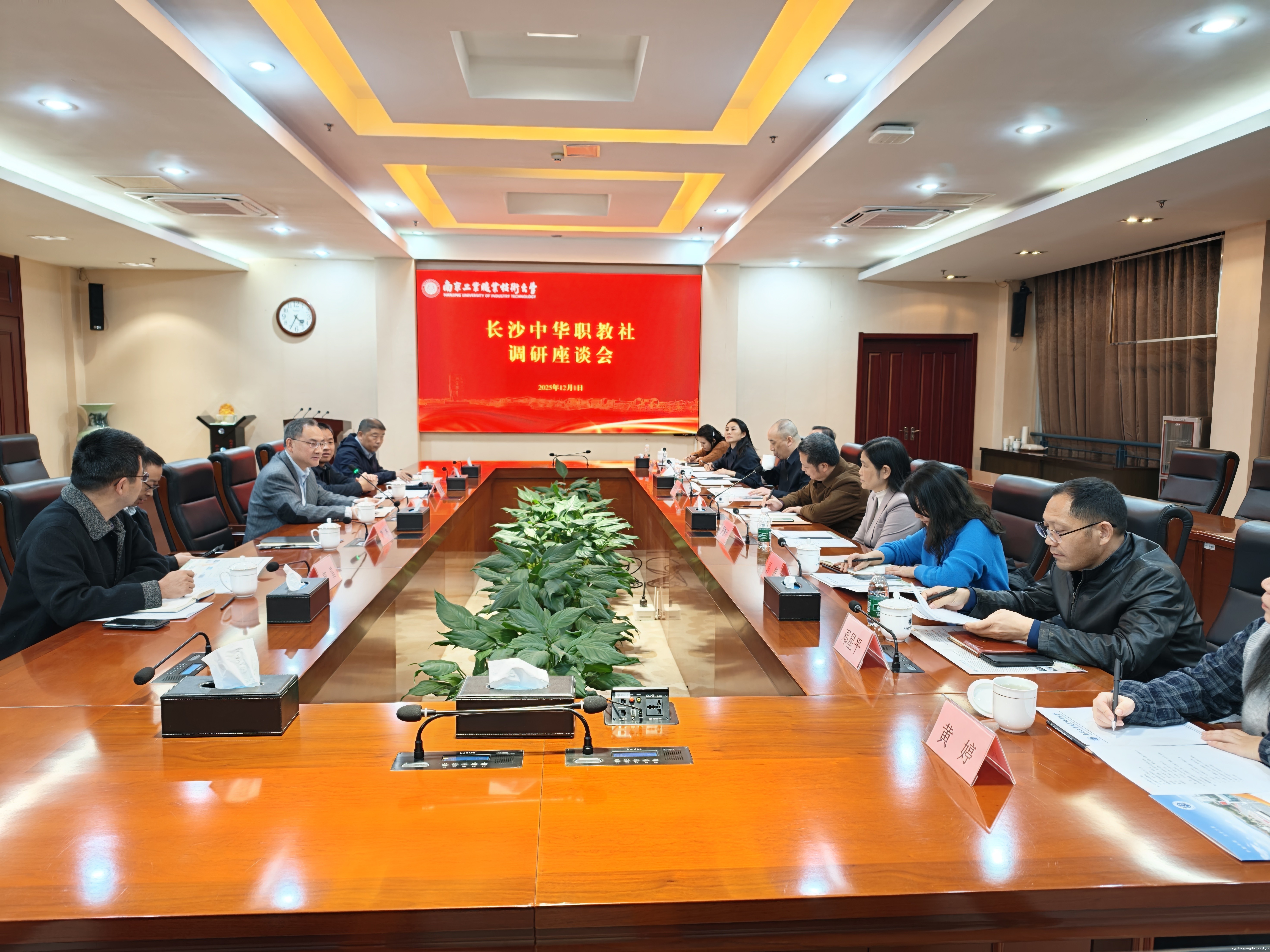 12月1日下午,长沙市教育局副局长、长沙中华职教社副主任杨庆江一行来校调研,江苏省中华职教社主任袁旭陪同调研。我校党委常委、副校长潘旭海在行政楼辅楼一楼会议室接待来宾,学校相关部门负责同志参加座谈。