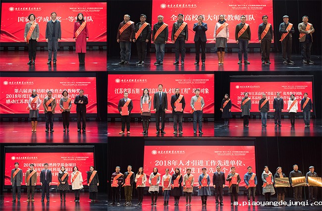 本次大会上,还举行了各类人才表彰。受表彰的有国家教学成果奖一等奖团队;教育部首批黄大年式教师团队——“人工智能工业应用”教师团队;第六届黄炎培职业教育杰出教师奖获得者谈慧、2018年度江苏省有突出贡献的中青年专家获得者王晓勇、感动江苏教育人物——2018最美高校教师获得者张小明;4位江苏省第五期“333高层次人才培养工程”培养对象; 2018年江苏高校“青蓝工程”优秀教学团队、中青年学术带头人、优秀青年骨干教师;2018年国家自然科学基金项目、国家社科基金项目、教育部人文社科思政专项项目获得者。受表彰的还有2018年人才引进工作先进单位、人才引进工作先进个人。
