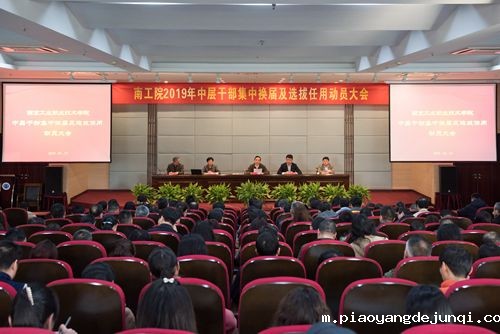 3月19日下午,我校在学术交流中心二楼报告厅召开了中层干部集中换届及选拔任用动员大会。学校在校领导,两委委员、中层干部、党支部书记、科长(主任科员),各级人大代表、政协委员,民主党派负责人,部分党外高级知识分子、教学部(教研室)主任、专业带头人、党代会代表、教代会代表等200余人参加了会议。党委书记吴学敏同志作动员讲话,党委副书记苏小冬同志介绍了《南京工业职业技术学院2019年中层干部聘任、选拔任用工作方案》。会议由党委副书记、校长谢永华主持。