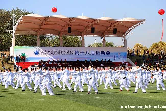 运动员入场后,全场举行了庄严的升国旗仪式,全体师生肃穆而立。党委副书记苏小冬致开幕词。她表示,体育在培养健康体魄、塑造健全人格、促进人的全面发展方面有着不可替代的作用。积极开展体育运动和健身活动,培养德智体美劳全面发展的社会主义事业的建设者和接班人,是高校做好立德树人根本任务的重要抓手。她希望广大师生在“更快、更高、更强”体育精神的指引下,进一步发扬南工院人的奋斗精神,积极投身学校建设发展,为学校在新百年开好头、迈好步作出新的更大的贡献。随后,尹娟娟同学代表全体学生运动员宣誓,杨海丰老师和韩小盛老师分别作为教工运动员代表和裁判员代表宣誓。宣誓结束后,运动员退场,全体师生观看了太极拳表演、团体操表演。苏小冬副书记宣布南京工业职业技术学院第十八届运动会开幕,现场一片欢腾。