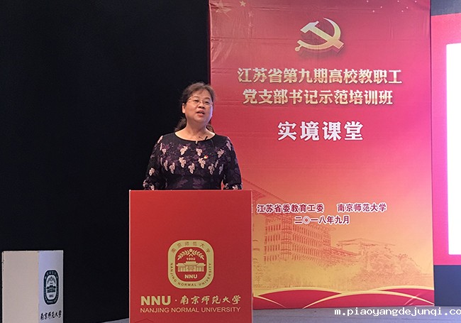 9月25日至28日,省教育工委主办的“江苏省第九期高校教职工党支部书记示范培训班”在南京师范大学仙林校区举行,培训班旨在深入推进高校基层党支部标准化建设,全面提升高校党支部书记队伍工作水平。9月27日上午,我校公共基础课部直属党支部书记陈桂兰副教授应邀在培训班上作了题为《科学 规范 引领 担当——高校基层党支部科学工作范式的认知与实践》主题报告,全省130余名高校党支部书记现场聆听。这是我校党支部书记首次在全省高校党支部书记培训班作支部工作经验交流,也是全省高校党支部书记培训班首位分享工作经验的高职院校党支部书记。