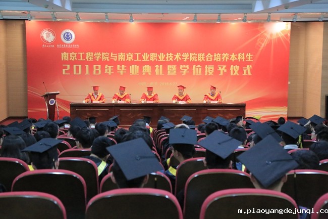 6月27日下午,南京工程学院与南京工业职业技术学院联合培养2018届本科毕业生毕业典礼暨学位授予仪式在我校交流中心二楼报告厅隆重举行。南京工程学院校长史金飞,我校党委书记吴学敏、校长谢永华、副校长霍雄飞,两校相关职能部门、二级学院负责人,毕业生任课教师、辅导员和班主任齐聚一堂,共同见证了为201名毕业生颁发毕业证书并授予学士学位的重要时刻,卢兵总督学主持毕业典礼。