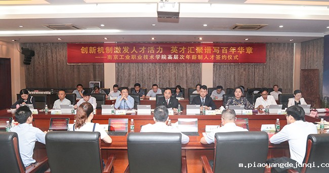 签约仪式开始前,与会人员观看了视频《百年职教,人才强校》,回顾了我校自实施“人才新政”以来,在人才引进工作中取得的成绩。朱建国副校长从上岗条件、工作职责、考核与薪金发放等方面介绍了学校年薪制人员管理暂行办法,并指出,无论是学校在职人员还是新引进的人员都可以申请年薪制。