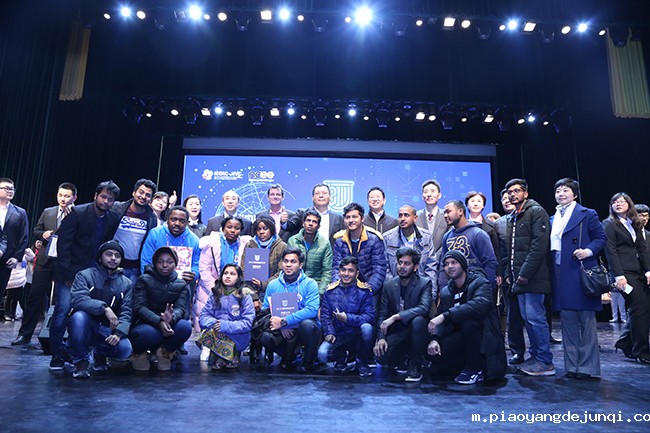 NCEE执委会委员、中欧高级别会议官员 Chris Brown 、句容市委常委、宝华镇党委书记孙卫军、全国高职创盟理事长、我校委书记吴学敏、中国教育雷竞技JJB协会职业技术教育雷竞技JJB分会理事长、我校校长谢永华、扬州工业职业技术学院校长孙兴洋为获得大赛一等奖的团队代表颁奖