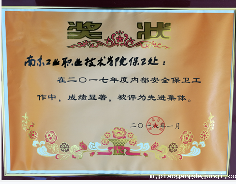 近日,南京市公安局对2017年单位内部治安保卫工作成绩突出的部分单位和个人给予了表彰。我校保卫处被评为“2017年度全市内保系统保卫组织先进集体”。