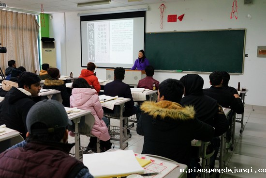 本次活动分为文化学习、文化体验两部分。文化学习的课程包括中华文化、中国书法等。在中华文化课上,老师通过各种贴近日常生活细节的传统文化讲解,使留学生同学对我国的传统文化、礼仪和饮食等有了全方位深入了解。中国书法课上,留学生同学兴致盎然。他们认真听讲,大胆实践,手脑并用,通过老师手把手的指导,快速掌握了毛笔使用的基本技巧,并完成了各自的书法作品。