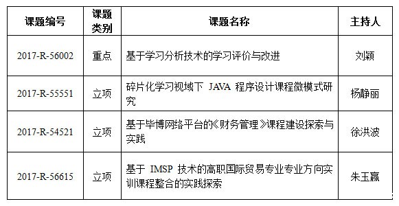 根据《江苏省现代教育技术研究2017年度课题立项通知》,我校组织申报课题中有4项课题获批立项课题,名单如下:
