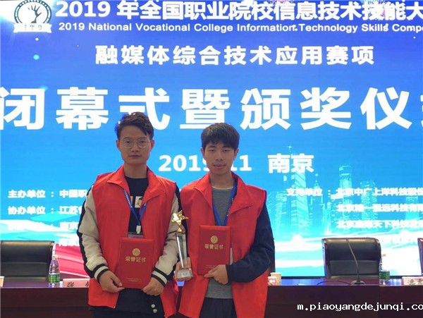 2019年11月,2019年全国职业院校信息技术技能大赛在南京隆重举行。我校艺术设计学院代表队从全国高职院校中脱颖而出,获得融媒体综合技术应用项目一等奖。