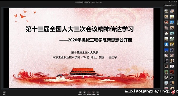 为了传达学习第十三届全国人大三次会议的精神,深入学习贯彻习近平新时代中国特色社会主义思想,高举中国特色社会主义伟大旗帜,6月22日,机械工程学院邀请了第十三届全国人大代表王红军教授开展线上新思想公开课。
