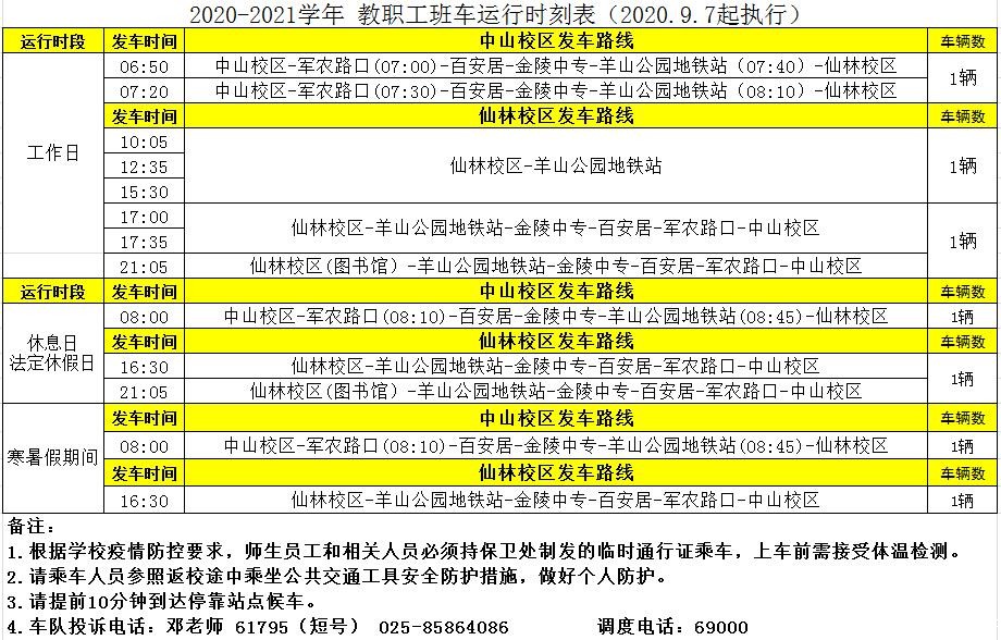 2020-2021学年校车运行时刻表