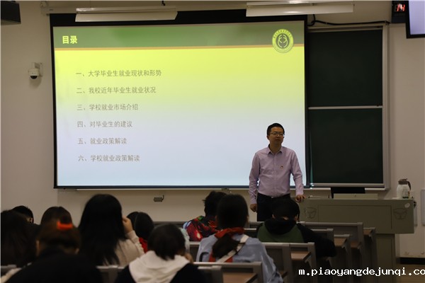 讲座开始,王老师首先就目前就业的现状及本校毕业生的就业状况进行分析,通过数据和具体案例,向同学们讲述当前就业市场的现状、对于升学与就业等选择分别做出分析和建议。王老师还对就业协议书、推荐表进行详细讲解,从心理准备、能力准备和就业信息获取进行了全方位就业指导,使同学对于就业的相关准备工作有了较为全面的认识。讲座结束后,王老师与同学们就目前就业方面遇到的困惑和问题进行了交流。