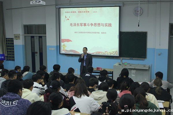 经济管理学院党总支书记陈林杰给团员青年作了题为“毛泽东军事斗争思想”讲座。陈林杰紧靠时事政治,引用华为真实案例和十九届五中全会蕴含的精神具体阐述了在这个百年未有之大变局中学习毛泽东军事斗争思想的重要性,实现伟大梦想必须进行伟大斗争。陈林杰讲课重点突出,授课条理清晰,通俗易懂,同学们深刻感受到了毛泽东军事斗争思想在当今时代的宝贵价值,升华了爱国主义情怀,坚定了为实现中国梦努力奋斗的决心。