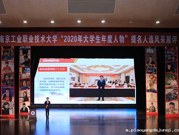 “青春铸就梦想,榜样凝聚力量。”12月4日下午,我校2020年大学生年度人物提名人选风采展评在大学生创新发展中心剧场举行。南京航空航天大学党委学生工作部(处)部(处)长侍旭,南京交通职业技术学院党政办主任康建军,南京铁道职业技术学院党委学生工作部(处)部(处)长张健,我校党委委员、党委宣传部部长刘畅,团委书记纪海波莅临活动现场担任评委。我校党委委员、副校长霍雄飞,各二级学院党总支副书记出席展评活动。此外,各二级学院辅导员、600余名南工学子共同见证了25名提名人选的卓越风采。