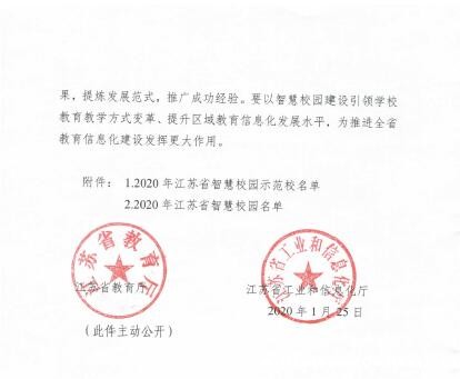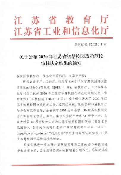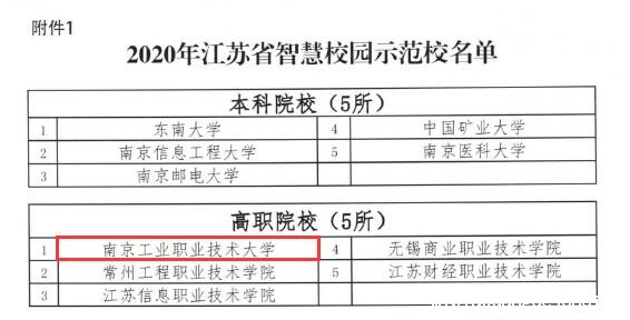 近日,江苏省教育厅、工业和信息化厅联合发布通知,公布了2020年江苏省智慧校园示范校审核认定结果。经过网评、现场答辩我校顺利获批“2020年江苏省智慧校园示范校”,本批共有5所高职院校和5所普通本科院校获此殊荣。