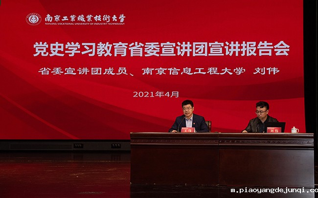 为深入贯彻习近平总书记在全国党史学习教育动员大会上的重要讲话精神,根据省委统一安排,4月7日下午,党史学习教育省委宣讲团宣讲报告会在我校大学生创新发展中心举行。省委宣讲团成员、南京信息工程大学期刊部副主任刘伟作宣讲报告。我校党委副书记王伟主持报告会。