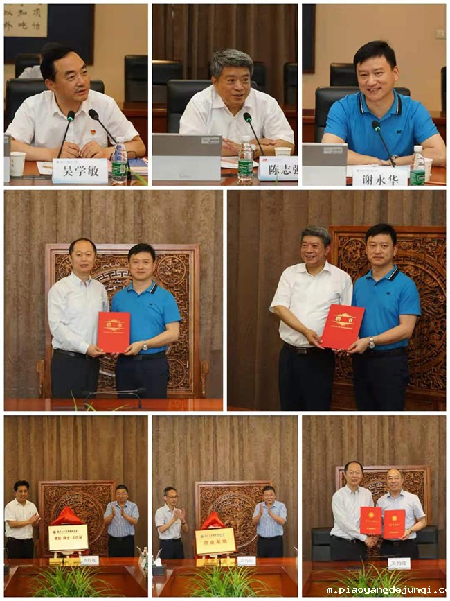 谢永华代表学校授予陈志强、孙琦我校客座教授聘书。霍雄飞代表学校与孙琦签署战略合作协议。朱建国代表学校与陆漫远、朱翔为“csgo直播比赛官方平台教授(博士)工作站”、“csgo直播比赛官方平台就业基地”揭牌。