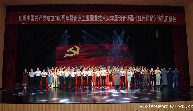 《红色印记》是学校党史学习教育的专创剧目,也是南工师生献礼庆祝中国共产党成立100周年的年度大戏。全剧分为“生·燎原之火”“祭·丹心碧血”“忆·风雨踔厉”“传·继往开来”四个篇章共21个节目,集中展现了中国共产党百年奋斗历程。剧中,还将学校创始人黄炎培著名的《延安归来》,学校校友江竹筠、许晓轩等革命烈士的“一封家书”,著名校友、中国工程院院士、全国劳模顾心怿等新中国建设者的奋斗历程,以及“江苏最美教师”张小明和“西部计划志愿者”等南工师生在抗击疫情、脱贫攻坚的感人事迹融入各个历史时期,表现了学校的百年办学历程与中国共产党的百年奋斗历程,始终同频共振。一代又一代职教人以自己的勤勉和奉献,为党、为国家、为人民、为社会主义事业贡献了青春热血。