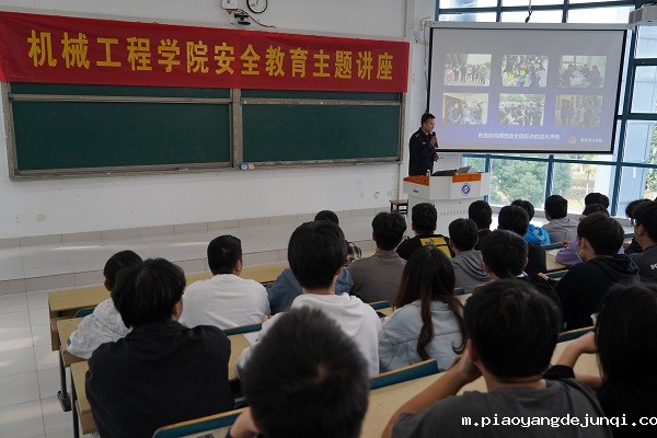 为了在学生中广泛开展“保持防范之心,安全伴你同行”主题教育活动,深入教育学生全面提高各类安全意识,防范电信网络诈骗,切实保障学生人身财产安全,维护校园安全稳定,11月3日,机械工程学院特邀南京市公安局内保支队校园安全保卫大队副大队长朱楠来校开展安全教育讲座。