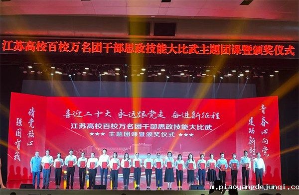 8月31日,由共青团江苏省委、中共江苏省委教育工委、新华日报社与江苏省学生联合会共同主办的江苏高校百校万名团干部思政技能大比武主题团课暨颁奖仪式在江苏大学落下帷幕。学校团委获评“优秀组织奖”,校团委副书记曲鹏在专职团干部专项赛中获特等奖,文化艺术教育中心教师宁伟男在兼挂职团干部和青年教师专项赛中获一等奖,经济管理学院李泽寰在基层团支部书记专项赛中获得二等奖,团委学生兼职副书记窦淼在基层团支部书记专项赛中获得三等奖。