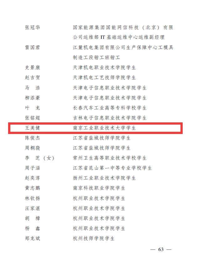 王美健,男,汉族,共青团员,机械工程学院机自2013班团支部书记,机械创新设计协会副会长。入校以来先后获得ICAN全国大学生创新创业大赛一等奖、全国最佳人气奖;江苏省技能大赛二等奖;江苏省“互联网+”大学生创新创业大赛三等奖;第十六届“发明杯”大学生专利创新大赛二等奖,校级挑战杯系列竞赛一等奖、二等奖;中国节能协会优秀志愿者等荣誉。王美健同学师从全国技术能手、江苏工匠--赵荣幸老师,并多次在数控综合加工赛项省赛中获奖,王美健同学积极参加各级各类双创竞赛、技能大赛,充分展示了职业院校学生精益求精的工匠精神和勇于创新的科研精神,为广大学生树立了榜样。下一步,我校将继续组织开展优秀学生典型选优树先活动,引领广大团员青年做刻苦学习、锐意创新的模范,带头立足岗位、苦练本领、创先争优,努力成为青年先锋,以优异青春业绩迎接党的二十大胜利召开!