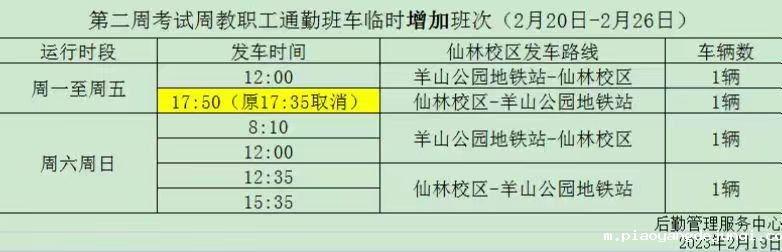 关于第二周考试周教职工通勤班车临时增加班次(2月20日-2月26日)的通知