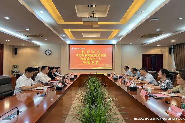 6月9日下午,江苏农林职业技术学院校长潘永圣一行来我校考察调研。党委副书记、校长谢永华,党委常委、副校长苏小冬以及人事处和继续教育学院的负责同志在仙林校区行政楼辅楼一楼会议室接待了来宾。