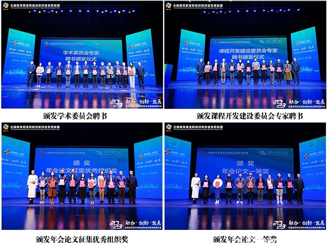 开幕式上,与会嘉宾与领导为联盟学术委员会专家库首批专家及课程开发建设委员会专家库首批专家颁发了聘书,同时为联盟2023年优秀论文征集活动优秀组织奖获奖单位代表及论文一等奖获奖个人代表颁奖。年会同时发布了高职院校创新创业教育调研报告、高职院校创新创业教育研究专项课题。主旨报告环节由联盟副理事长、教育部高等学校创新创业教育指导委员会副主任委员、浙江机电职业技术学院校长贺星岳主持。张巍基于时代发展的大背景,强调创新对于中国经济行稳致远的重要作用,指出新形势下高校创新创业教育应做好三个“统筹”工作,不断深化改革,充分激发青年人才的创新思维与潜能。李双寿结合清华大学基础工业训练中心多年实践经验,倡导充分重视工程教育在创新创业教育体系中的重要位置,同时提出“以劳创新”的新型教学理念。德国国际合作机构中德合作职教项目负责人张耀文从德国的创新创业教育实践切入,结合相关案例,深入剖析了新时期中国职业院校创新创业教育可能面临的机遇与挑战。香港大学中国商业学院高级课程主任暨首席讲师郑舒宁基于理论模型与多年实践,针对高等院校如何促进产学研合作,总结提出了六项可操作性建议。赵爽从当下数字经济发展现状以及华为自身多年的创新实践出发,指出新时期全国数字人才存在巨大缺口,亟需政企行校协同探索,共同赋能人才培养全流程。