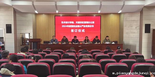3月20日下午,艺术设计学院在天堂校区六楼报告厅召开2024年度全面从严治党暨工作责任书签署大会。艺术设计学院、天管办全体教职工参加大会,会议由学院院长、天管办主任孔伟主持。