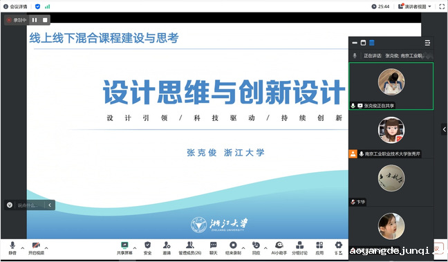 为推动高职院校创新创业教育资源整合与质量提升,创新创业学院依托全国高职院校创新创业教育联盟,联合25所联盟高校共同策划跨校跨区域“同上一门创新实践课”协同教学活动。活动开展一学期来,课程进展顺利,教学成效受到相关部门以及兄弟院校的一致好评。2月23日晚19:00,新学期“同上一门创新实践课”集体备课研讨会在线上开启。浙江大学国际设计研究院副院长、计算机科学与技术学院教授、博士生导师、教育部“设计+X”创新创业教育改革虚拟教研室负责人、国家一流课程《设计思维与创新设计》负责人、全国高校教师教学创新大赛一等奖获得者张克俊,子谦国际创业教育学院朱燕空,以及参与授课的26名联盟高校教师,共同在线参与新学期集体备课研讨会。研讨会由创新创业学院副院长张秀芹主持。