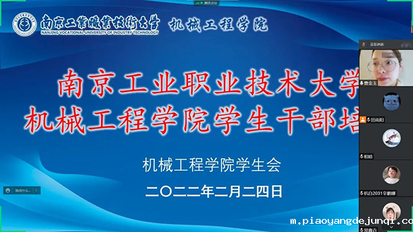为进一步提高机械工程学院学生会学生干部的整体素质,促进学生自我管理、自我教育、自我服务、自我监督,实现学生干部的带头作用,2月24日中午,机械工程学院举行了2022年春季学生干部线上培训会,机械工程学院学生会指导老师曹金玉和全体学生干部参加了此次会议。