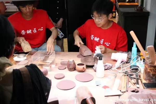 6月17日,实践团小分队拜访了正高级工艺美术师、全国技术能手陈忠庆老师。在访谈中成员们了解到陈老师初中时曾经是学校的长跑运动员,怀着满腔热血早早参加了工作,不到二十岁就曾为工作单位挣回过好几块游泳比赛的奖牌。然而1991年的一场车祸将他的生活狠狠地撞离了原本的轨道,一只脚高位截肢。那一年,陈老师23岁,在那段痛苦的日子里,是紫砂壶作为他的精神载体带着他从运动场来到了泥场上。陈老师不仅自己积极向上,还富有爱心。因为紫砂壶的制作只需要双手健全就好,于是他与伙伴一起,在残联的帮助下成立了爱德陶艺社,以此来帮助那些与他一样的残疾人,希望他们都能用自己的双手养活自己。访谈结束后,实践团的成员们对陈忠庆大师的敬意油然而生,同时也更加明晰了自己身上肩负的重任。